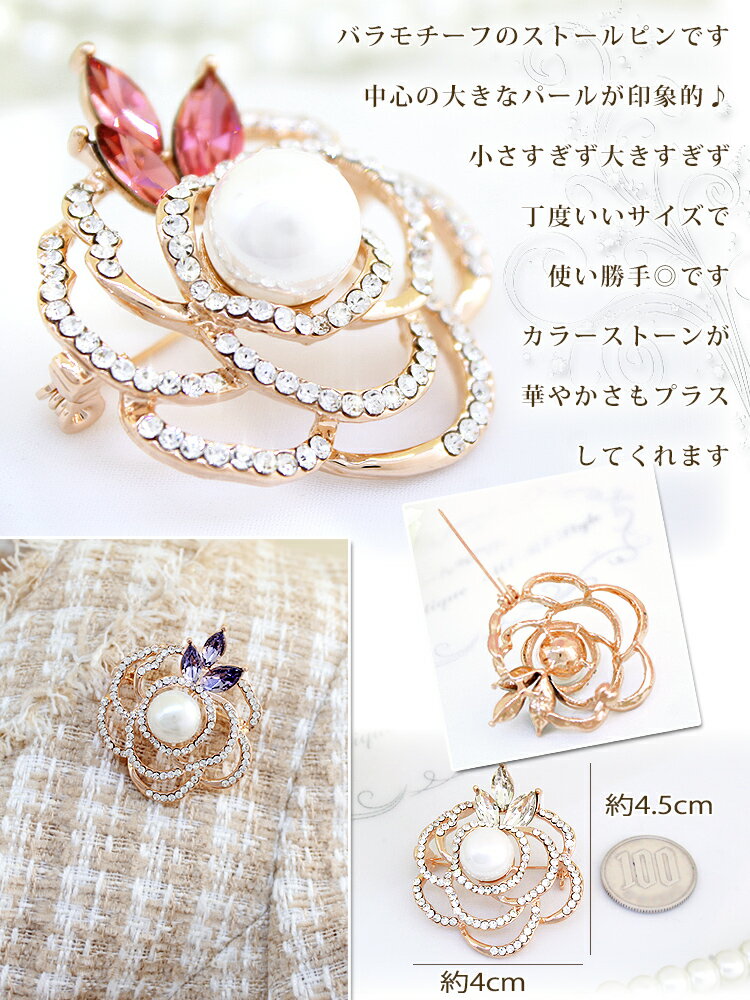 送料無料! バラモチーフのストールピンです 中心の大きなパールが印象的♪