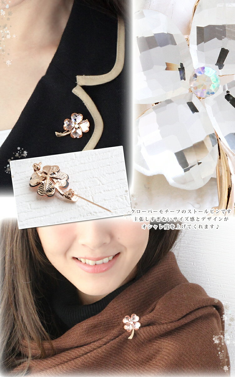 送料無料! クローバーモチーフのストールピンです 主張しすぎないサイズ感とデザインがオシャレ度を上げてくれます♪