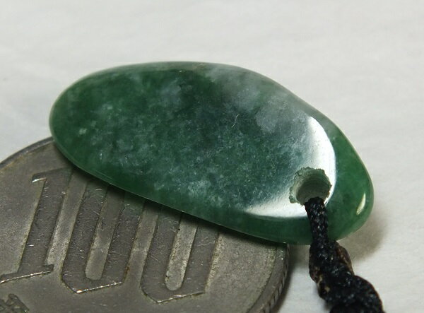 紐込み全長:約90mm 石サイズ:23×11×厚5mm 重さ:2.2g ●糸魚川翡翠は日本翡翠独特な落ち着いた石質です。