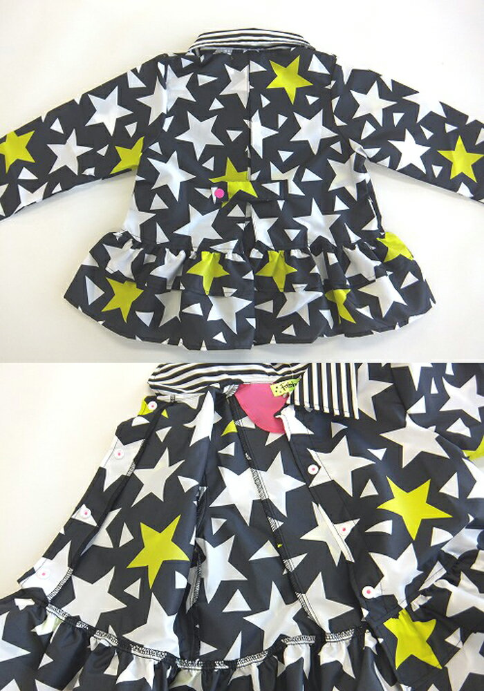 メーカー希望小売価格はメーカー商品タグに基づいて掲載しています星柄フリルレインコート トートバッグ付き ブラック[100cm/ 110cm/120cm/130cm] ポップな柄に2段フリルの可愛いレインコート。